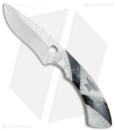 The Buck Painted Pony Blacksmith is based on a classic Buck fixed blade design that has been updated with collectible materials. It features a 420HC steel blade with an elegant mirror polished blade. The handle sports mother of pearl and a Buck anvil logo inlay made from black recon stone. Item includes an Alder wood inlay glass top display box. This limited edition series is serialized and includes a certificate of authenticity.