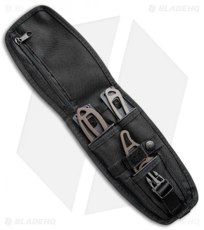 This PakLite Field Master Kit contains the PakLite Large Skinner, the PakLite Caper and the PakLite Guthook. Each knife in this set comes with a brown handle and a satin blade. All three items are carried in a black sheath. The sheath itself is built with removable liners. Once these liners are removed the sheath is washable. Zipper pockets are included in the sheath for carrying tags and other necessary items. The back of the sheath has an adjustable belt strap, so carrying this pack is easy and comfortable. With this kit, hunters everywhere will appreciate the convenience of having three knives on them for the weight of one, when weight counts – pack light, cut easy!